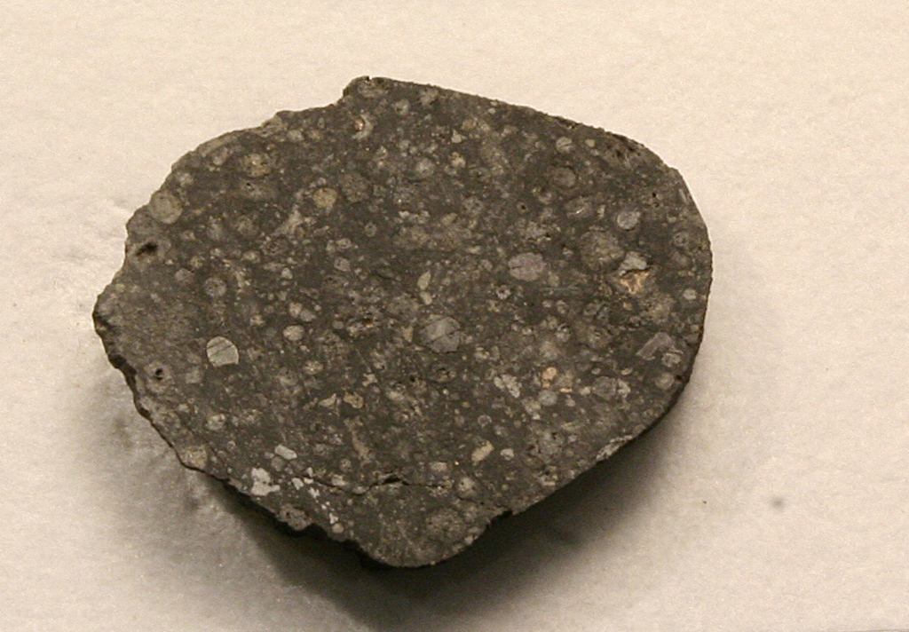 Caractéristiques physiques: Allende est caractérisée par la présence de grosses inclusions irrégulières de couleur blanche dans une matrice gris foncé. Ce sont les inclusions calcium-aluminium : les plus anciens fragments de roche connus dans tout le système solaire! Les éléments isotopiques contenus dans ces inclusions proviendraient de l'explosion d'une supernova à proximité de la nébuleuse solaire originale.