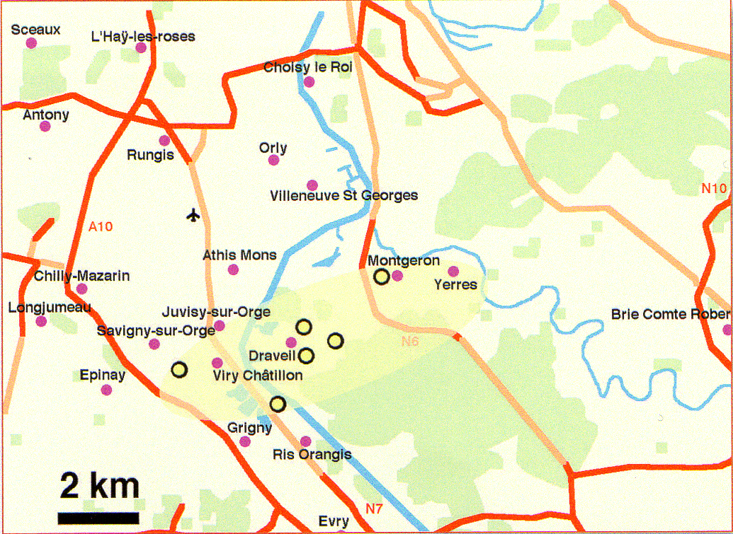 et une pierre de 20 g dans le parc du lycée de Montgeron. Le facteur de Savigny a été témoin de la chute à 12h30 le 13 juillet, pensant qu'il s'agissait d'un morceau d'avion. Ces pierres sont conservés au MNHN à Paris.